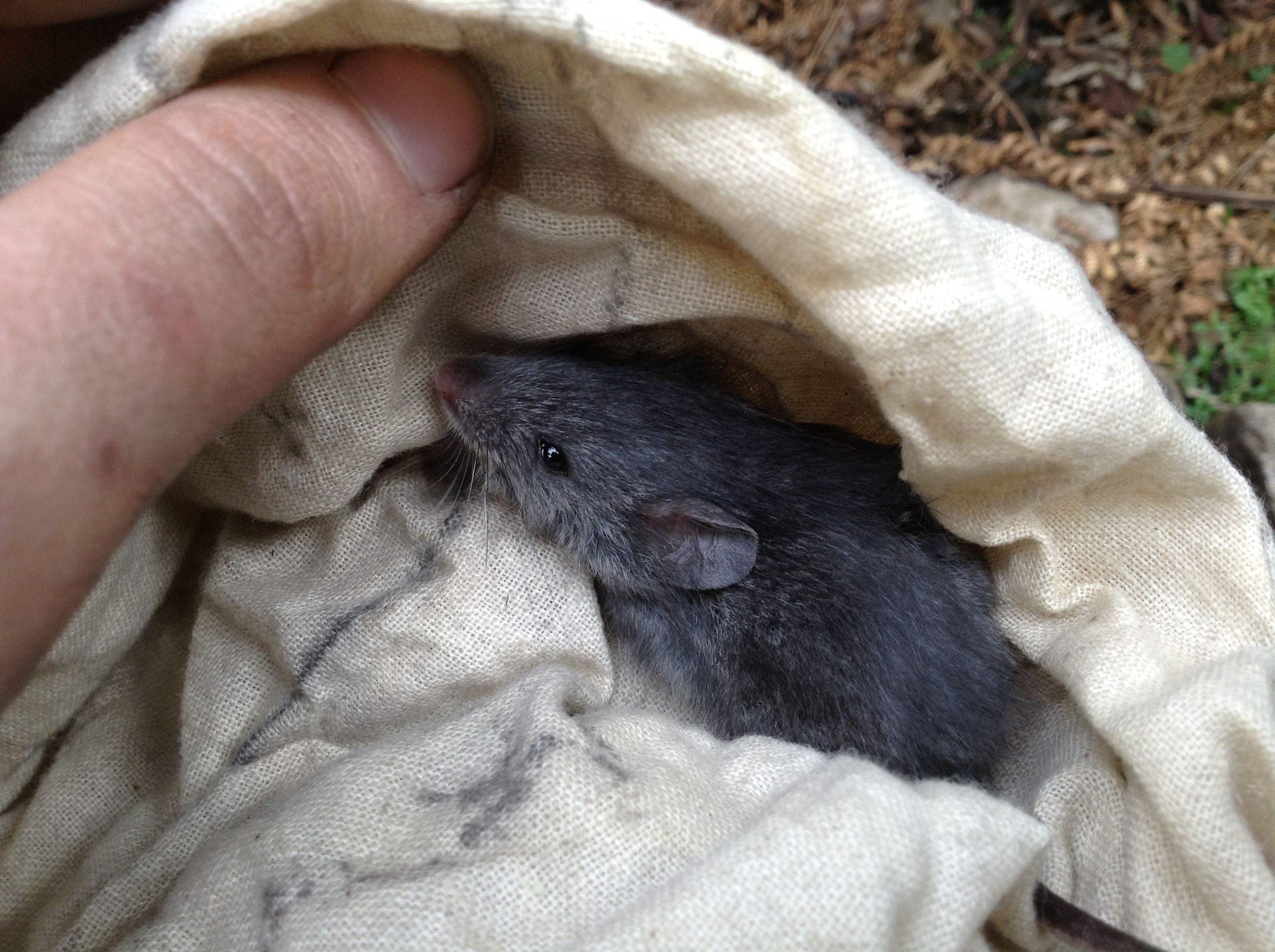 Juvenile smoky mouse ( Pseudomys fumeus) in the Grampians National Park, October 2013. Image: Phoebe Burns
